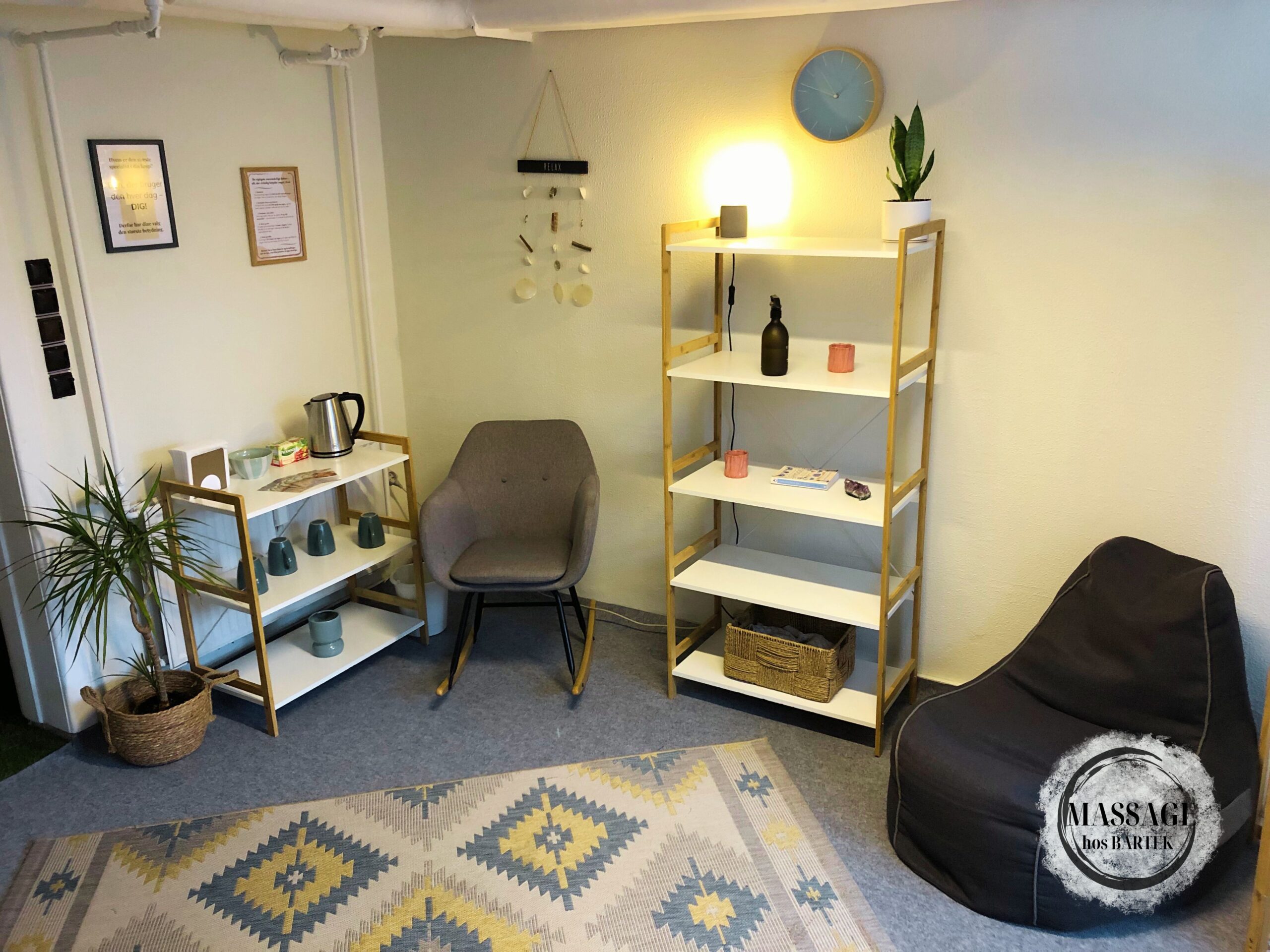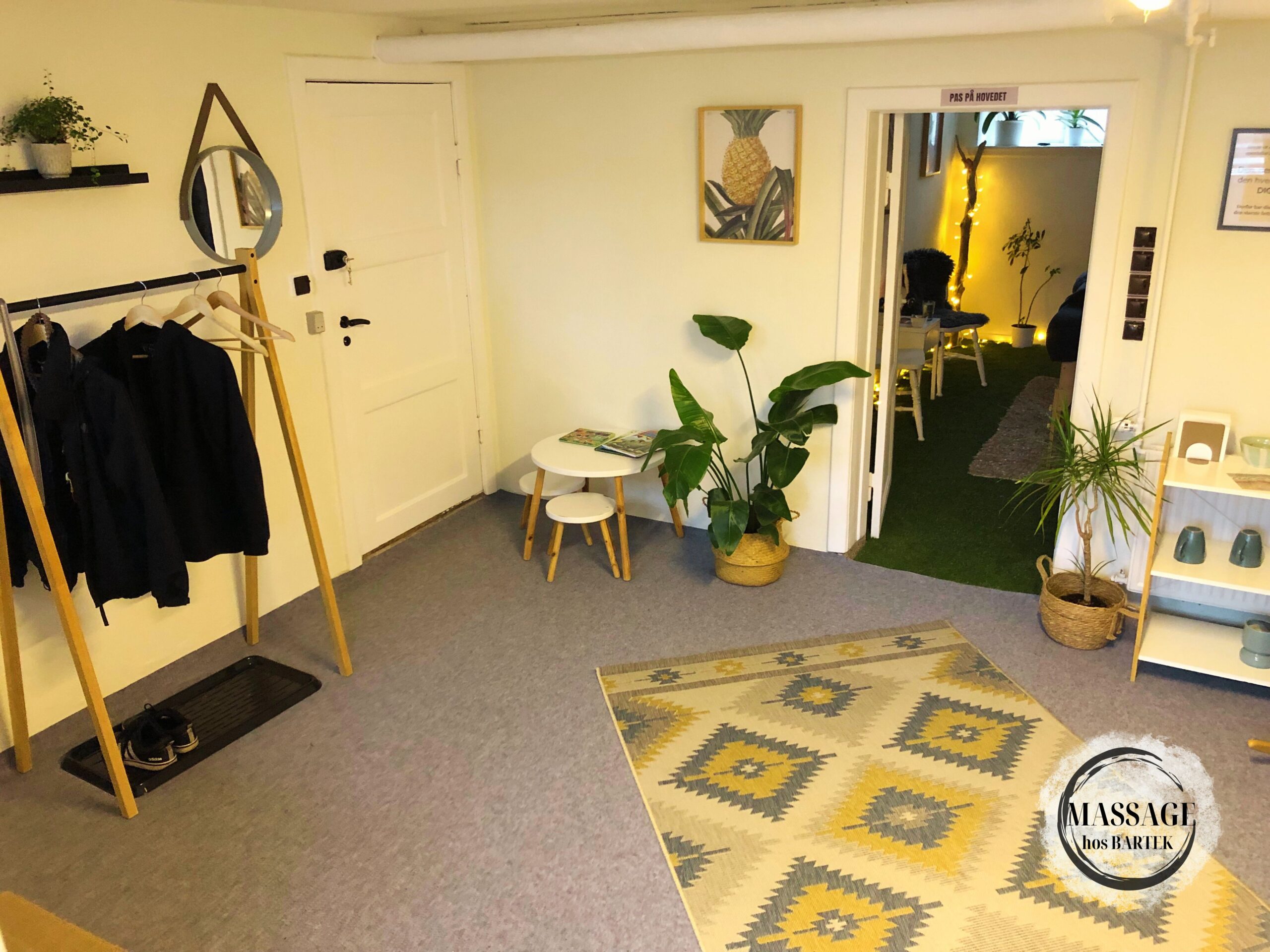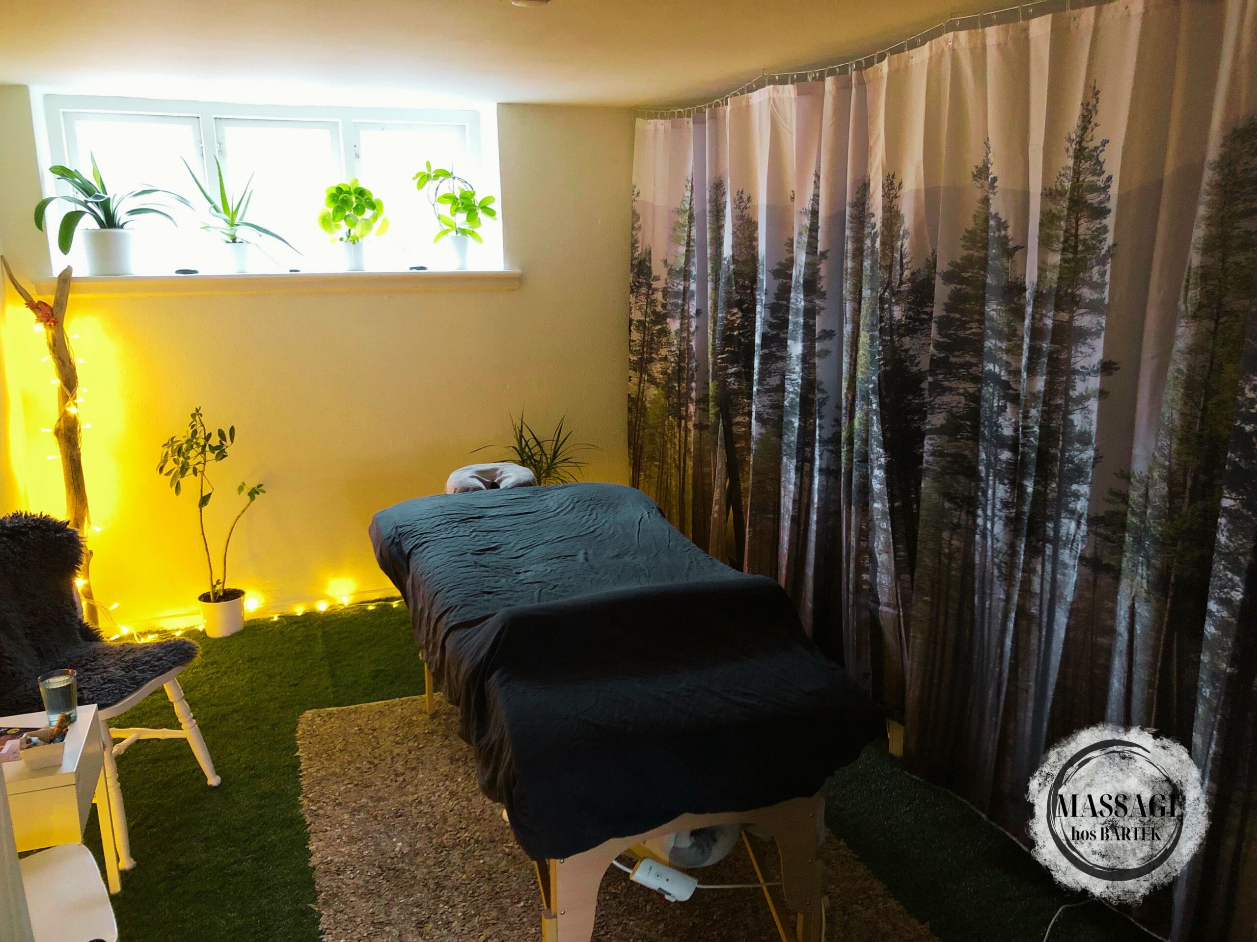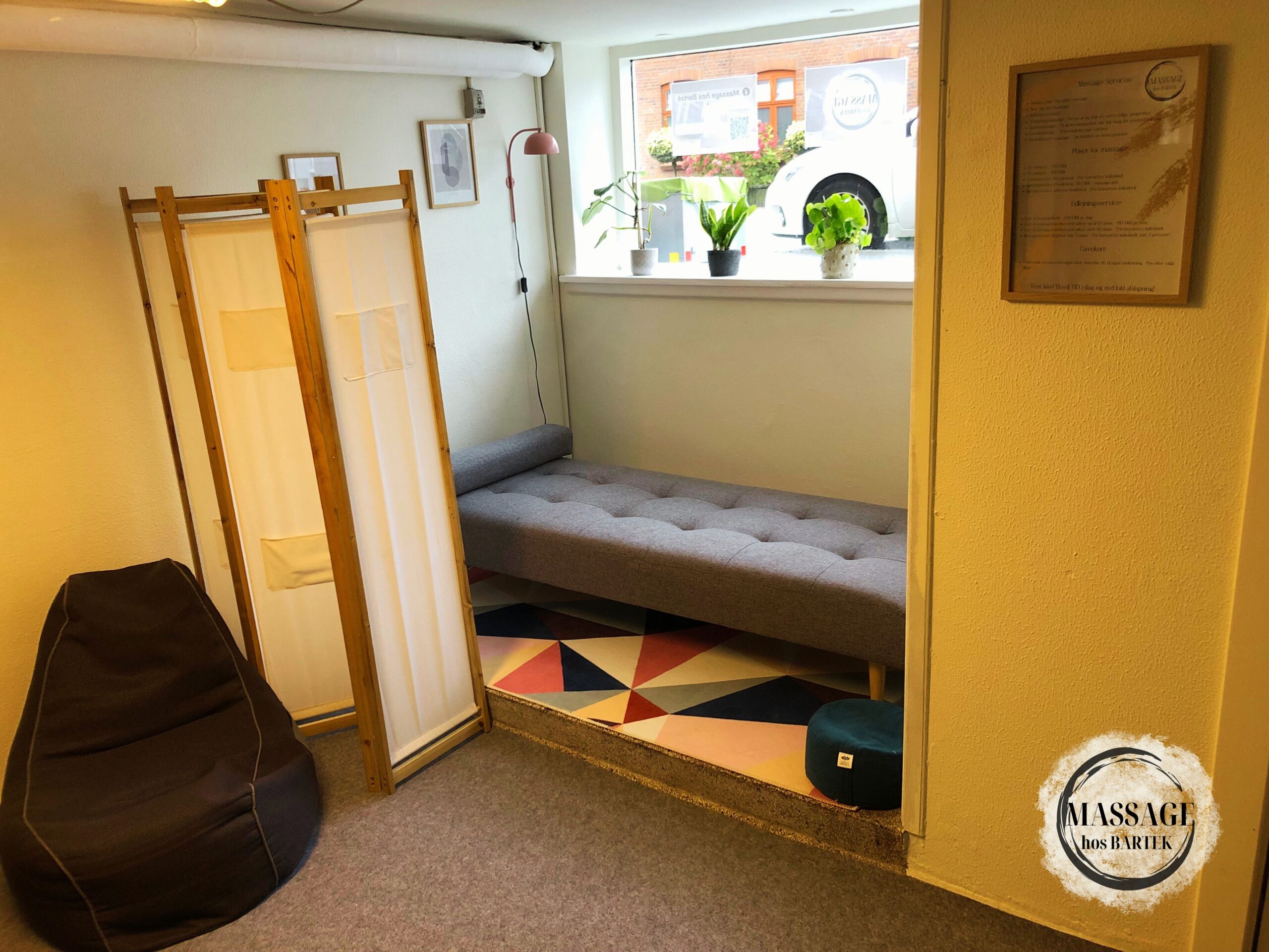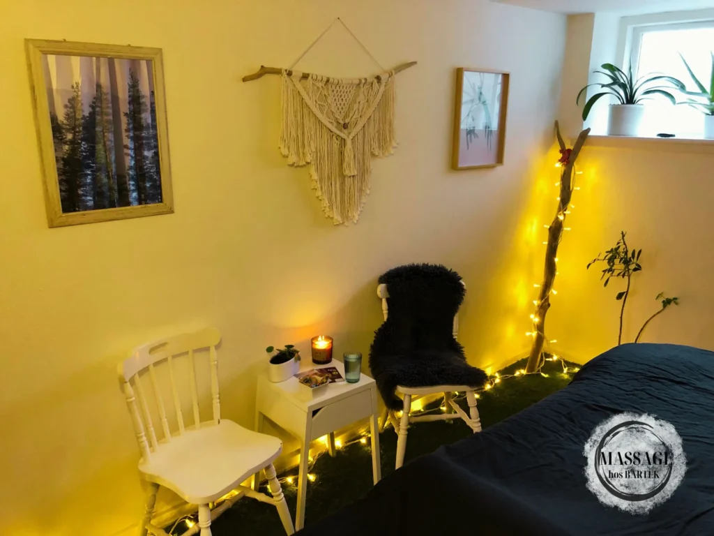 Massage hos Bartek ligger i hyggelige og afslappende omgivelser med tre rum, som skaber en følelse af hjemlighed og nærvær.